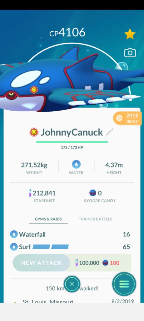 I just got Best Buddy #9 yesterday during the day and then got the last candy for Level 40 for my Kyogre that I call Johnny Canuck. This is my highest CP Best Buddy and is as of now #2 overall. #10 will be the gold medal and is estimated to be 160 hearts away. I also do need to find the buddy after so I can get “Buddy Ball” on it for when I walk it, as I call the Buddy Level 2 Catch Assist.