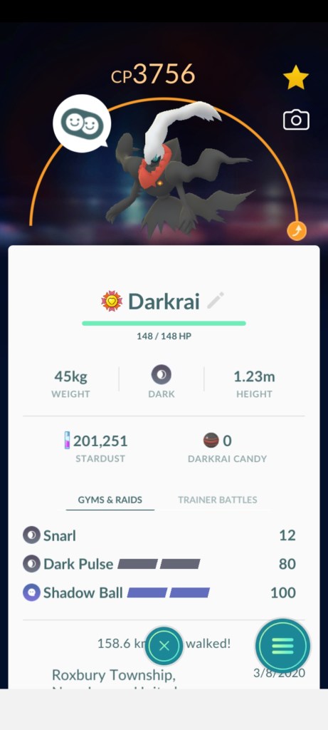 I just got my 10th Best Buddy (Silver Medal). This is one I wanted to get as I like Darkrai, but there have been a few starts and stops to get others going as well. I put both Dark Pulse and Shadow Ball to make this the best it could be…