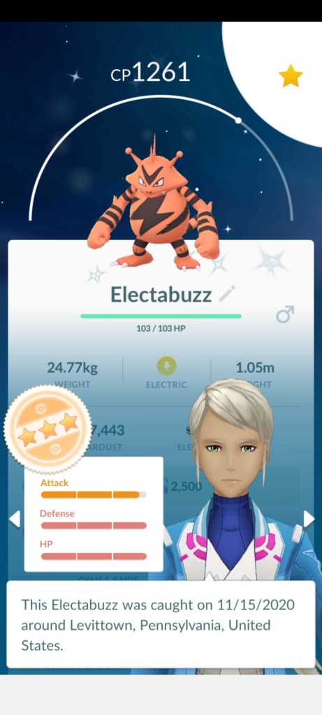 Electabuzz Community Day Posted byJoe KapraszewskiNovember 15, 2020November 16, 2020Posted inUncategorized Today I went to see some of my favorite out of my area fellow Trainers. This is my catch of the day… So close… How was yours? Share this: Click to share on X (Opens in new window) X Click to share on Facebook (Opens in new window) Facebook Like Loading... Related